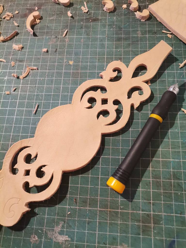 Nech sa páči, tu je v skratke zhrnutie, ako taká tvorba u mňa začína: Nápad, zhotovenie predlohy, prekreslenie na kožu, vyrezanie, opracovanie hrán, vyklepanie vzoru, farbenie, príprava dier na šitie, šitie, doladenie detailov.